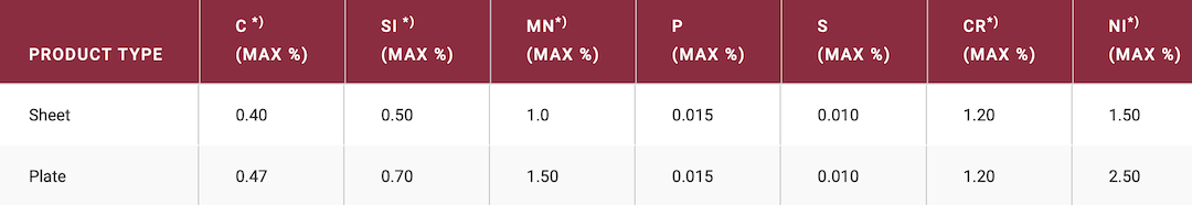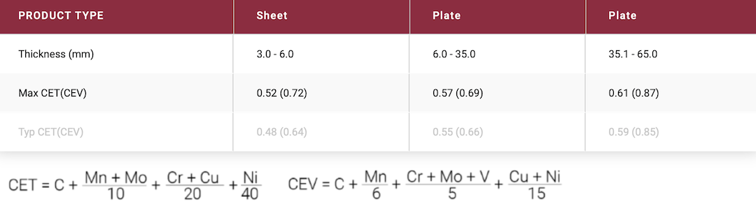 این فولاد بصورت شیت از ۳ تا ۶ میلیمتر و بصورت ورق از ۶ تا ۶۵ میلمیتر تولید میگردد.